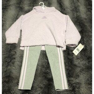 Adidas Girl's Long Sleeve Hood Sherpa Tights Set Little Kid, Size 6, 2 Piece
