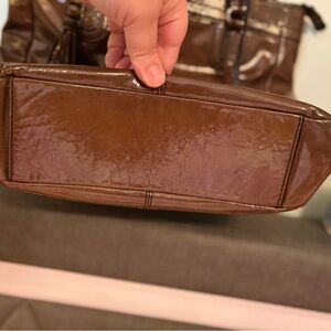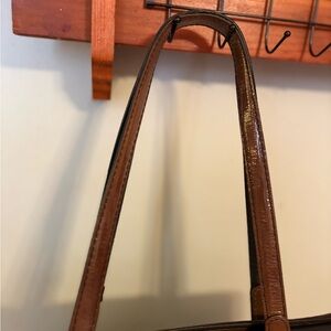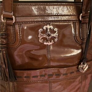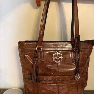 Elegant brown leather tote bag with stylish tassel and heart charm. Perfect for everyday use.