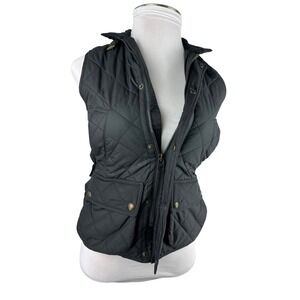 Polo Ralph Lauren Diamond Quilted Vest XS Black Full Zip Corduroy Collar Belt