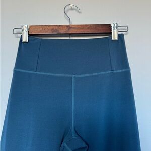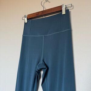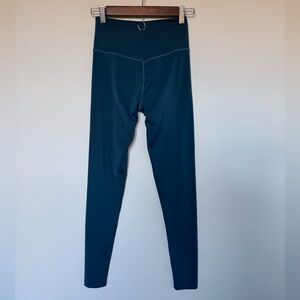 High-waisted teal leggings. Sleek and comfortable design. Perfect for workouts or casual wear.
