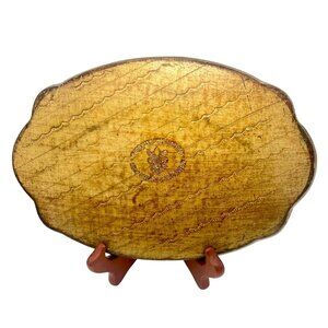 Vintage Italian Florentine Gilt Gold & Orange Wooden Tray Hollywood Regency 10"L