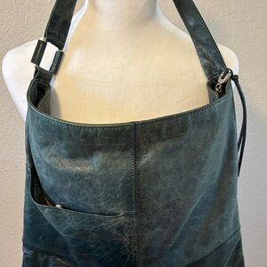 Hobo Vintage Teal Leather Shoulder Bag, With Silver Accents