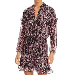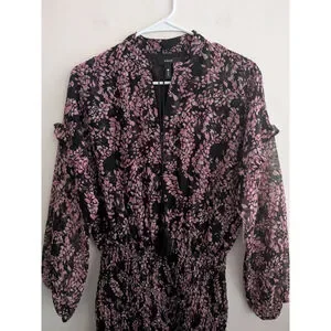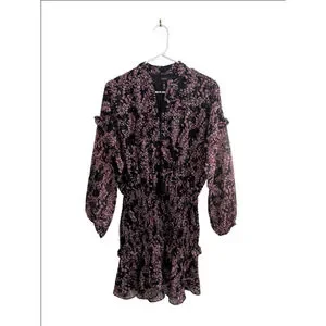 Women's AQUA Black Pink Floral Smocked Mini Dress S