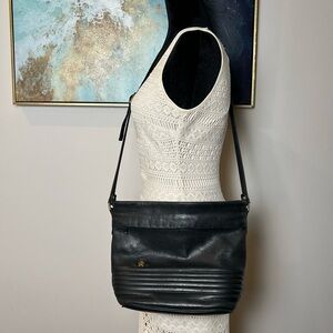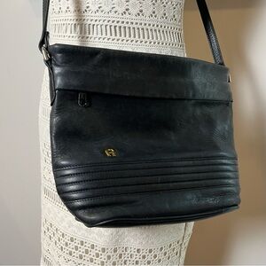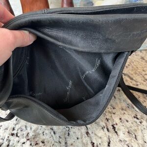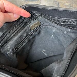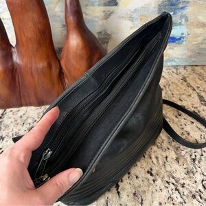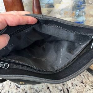 Stylish black leather shoulder bag with a sleek design. Perfect for everyday use. So many pockets and zippers for keeping your essentials organized and secure.