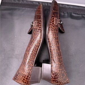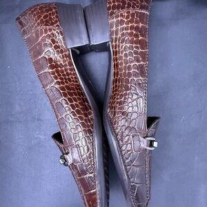 Aerosoles Brown Croc Embossed Bit Loafers Square Toe Comfort Shoes Sz 7.5