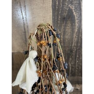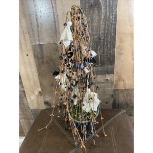 The Weeping Willow Tree Autumn Halloween Bat Witches Hat Ghost decoration is a 17" figurine perfect for adding a spooky touch to your Halloween decor. This table top decoration features a willow tree design with ghost, bat, and witches hat elements in orange, black, green, and white colors. Ideal for any room, this seasonal-themed piece is sure to delight fans of Halloween and those looking to add a whimsical and charming accent to their home during the fall season.