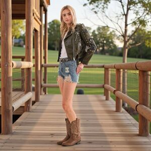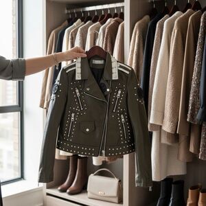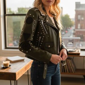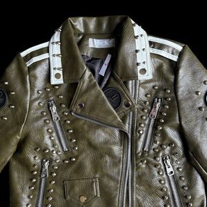 Blue B NWT Studded Vegan Leather Moto Jacket – Fantasy Rebel Look, Size Small