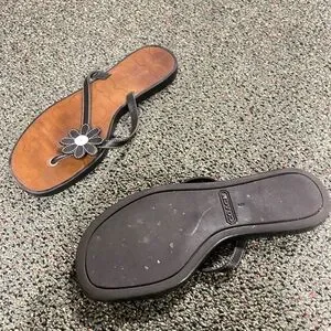 Coach Leather Flower Flip Flops Size 5, See pictures for details.