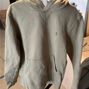 Classic beige hoodie with kangaroo pocket. Iconic Polo logo on chest. Soft and comfortable fabric.
