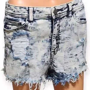 Trendy light blue jean shorts with a frayed hem. Perfect for casual wear.