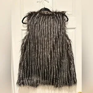Chic faux fur vest with a rich brown and cream design. Ideal for stylish layering.