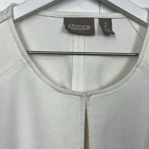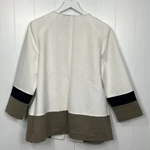 Chico”s Womens Open Front Jacket 2 (L) Cream Tan Black Color Block Ponte Elegant