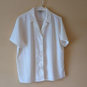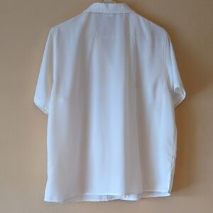 Elegant cream short sleeve shirt by TravelSmith. Ideal for versatile styling. Approximate measurements: pit-to-pit 22", shoulder to bottom hem 26". Loose vintage fit. Never had shoulder pads.