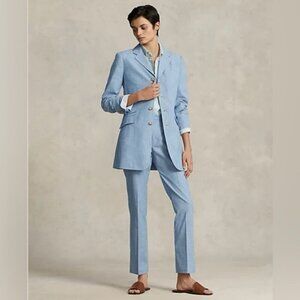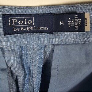 NWOT POLO RALPH LAUREN Kick Flare Crop Pants Chambray Blue 100% Cotton Size 14