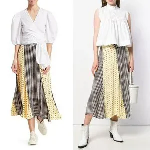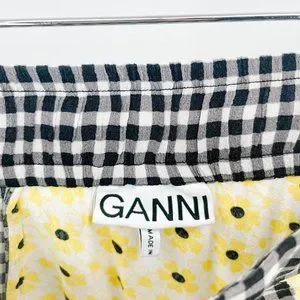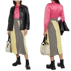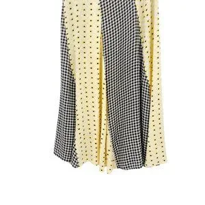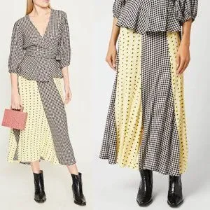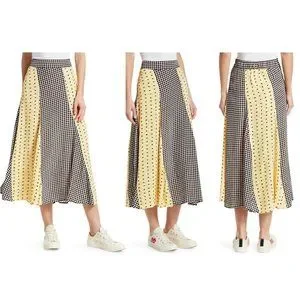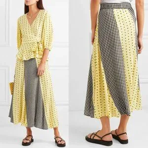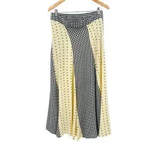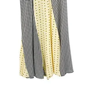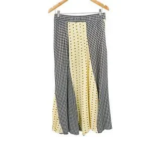 GANNI Daisy Printed Floral Crepe Paneled Maxi Skirt Gingham Yellow Flowy EU 40