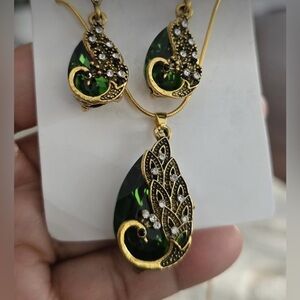 Peacock Gold and Green Jewelry Set NWT