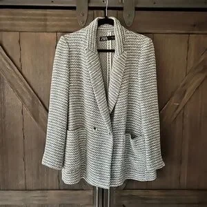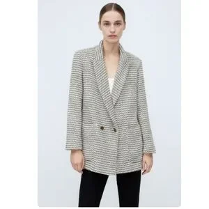 Zara Textured Double Breasted Peaked Lapel Tweed Blazer Jacket Size Medium