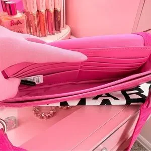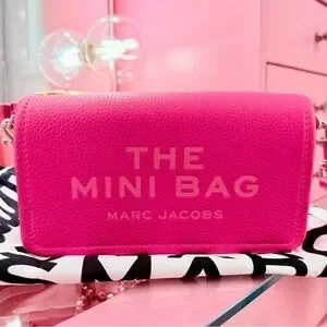 Gorgeous Marc Jacobs tote handbag paired with the matching mini bag wallet in a stunning hot pink colorway that is now SOLD OUT. Perfect statement set that adds a bold pop of color to any outfit!