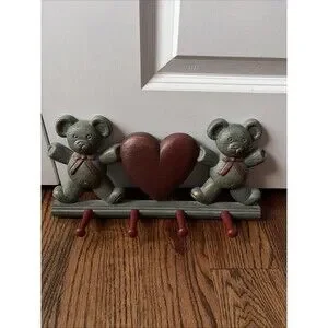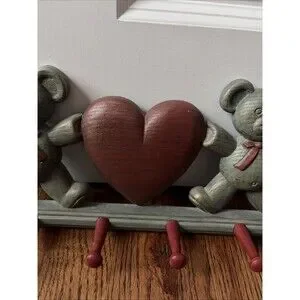 This vintage Teddy bear heart coat or sweater rack is a charming addition to any nursery or room decor. Made of plastic with a branch hook style, this unisex wall-mounted rack features a multicolor finish and a cute teddy bear theme. Easy to care for with a wipe-off instruction, this original vintage piece is perfect for organizing coats, hats, or other items in your home. With one to six hooks available, this rack provides practical storage while adding a touch of whimsy to your space.