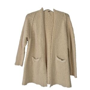 Free People Sweater Womens M Beige Wool Blend Chunky Fuzzy Cardigan Duster