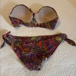 Vibrant paisley print bikini set perfect for a stylish beach day. Features a colorful design with a comfortable fit.