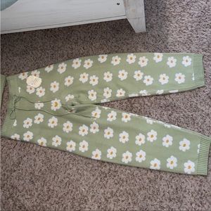 Altar'd State Floral Daisy Knit Joggers/Sweatpants and matching Knit Cropped Tank Top
