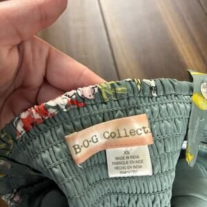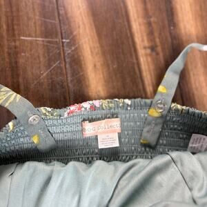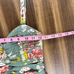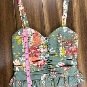 BOG Collective size XS Green floral quilted ruched tank crop top, ruffle hem