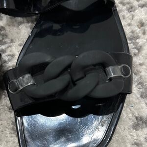 Slide into effortlessly trendy appeal with the Trecha sandal from JLO Jennifer Lopez. The oversized chain accents pop against the jelly construction for your new favorite pair.