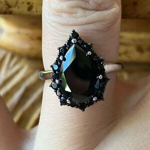Natural Black Spinel Sterling Silver Ring Size 6
