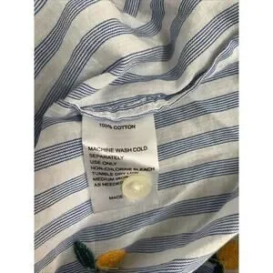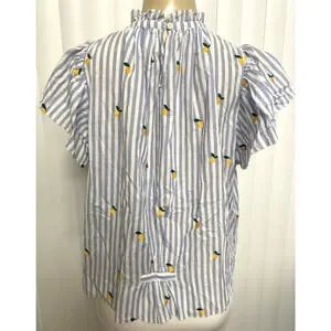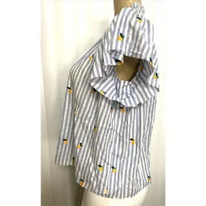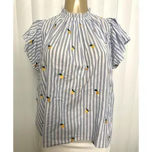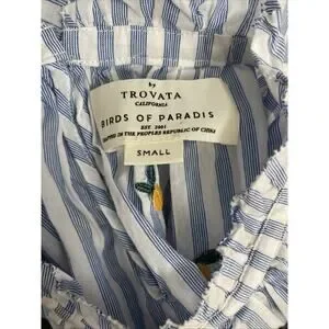 Trovata Birds of Paradis Carla Blouse Top Blue Stripe Short Sleeve Meyer Lemon S