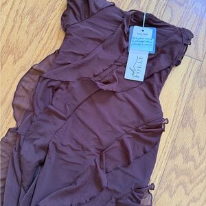 New Oh Polly Strapless Nevali Bandeau Ruffle Detail Chocolate Brown Dress 2