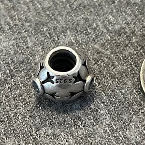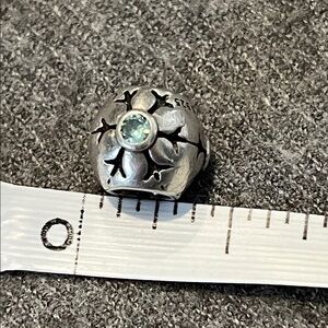 Pandora Sterling Snowflake Blue Stone Slide Charm. Stamped ALE S925. Three sided with snowflake stamp & blue stone accent on each. Approximately 1/2”. Weight is 3.8. Great condition. Smoke free & pet free home.