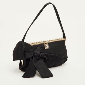 Valentino Bow Satin Crystals Embellished Frame Baguette Bag