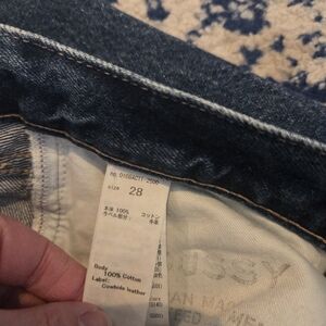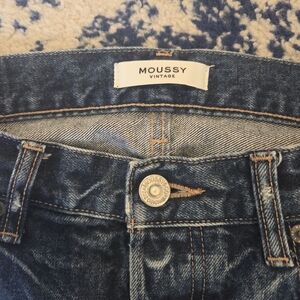 Stylish dark blue jeans with a cropped ankle cut. Features subtle distressing for a chic look.