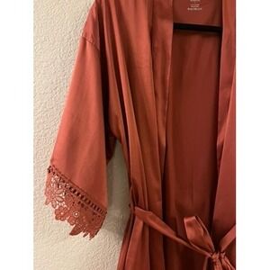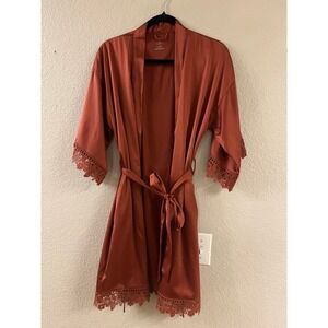 AW Bridal Dark Pink Satin Lace Trim Robe Small Wedding Getting Ready