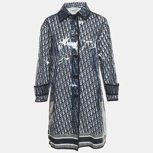 Dior Navy Blue Oblique Knee-Length Rain Coat S