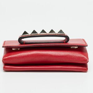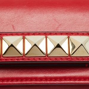 Designed to carry only the essentials the Valentino Va Va Voom Mini is defined by its compact form and precise detailing. Smooth red leather is paired with a polished chain strap and signature stud accents creating a refined clutch with a confident presence.
