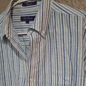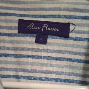 This Alan Flusser shirt showcases a stylish blue and white color scheme, ideal for a laid-back yet sophisticated appearance. Crafted from lightweight cotton, it ensures comfort and breathability for everyday wear. Its classic design makes it a versatile piece for any casual wardrobe.