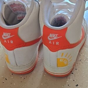 Nike Kids White and Orange High-Top Sneakers