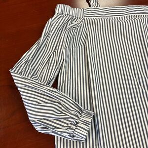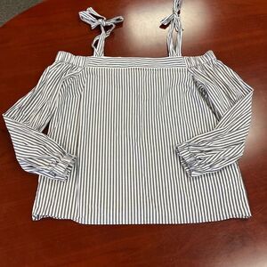 Michael Michael Kors Gray & White Stripe Off the Shoulder & Tie Blouse sz L