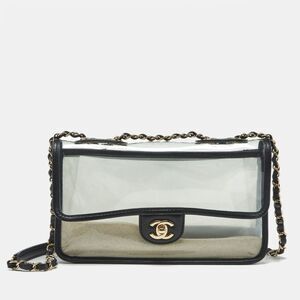 Chanel Sand By The Sea Black/transparent Leather And Pvc Flap Bag