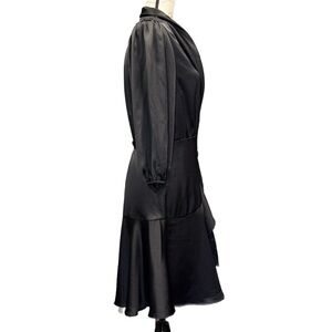 This elegant mittoshop wrap dress in size medium features a luxurious satin finish and a flattering silhouette. The wrap design with a side tie adds a touch of sophistication, while the flowing skirt enhances its graceful appeal. Perfect for evening events or special occasions.