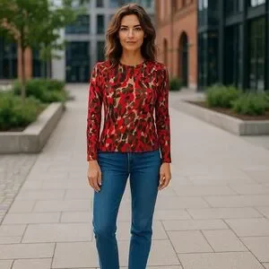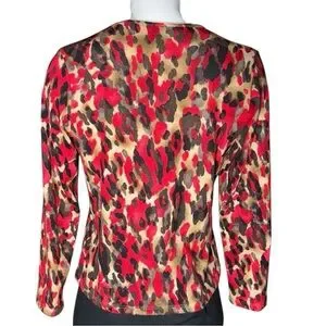 TANJAY WOMENS MULTI-COLOR PETITES MEDIUM SWEATER CREWNECK ANIMAL PRINT EUC