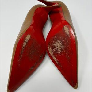 Authentic Christian Louboutin "Kate" leather pumps in nude (a warm camel-y shade). Size 37.