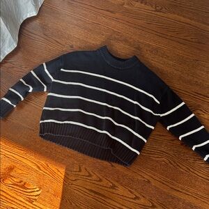 Stay cozy and stylish with this chic navy and white striped sweater. Perfect for any casual outing. Like new.