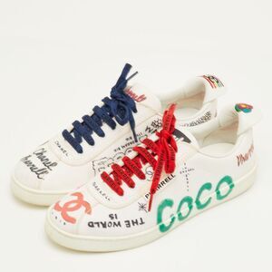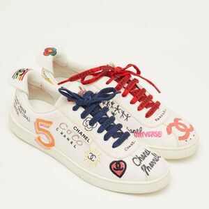 Chanel X Pharrell Cc Size 40 White Canvas Graffiti Print Low Top Sneakers