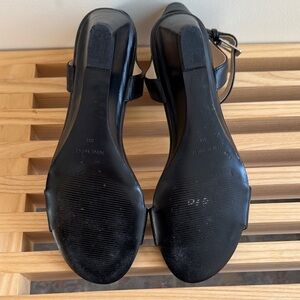 Chic black wedges by Nine West. Sleek design with ankle strap. Excellent condition, worn a few times.