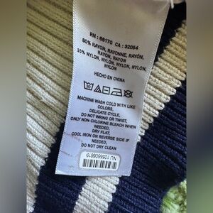 Stylish cardigan with a classic collar. Features navy accents on a white base. Perfect for layering.