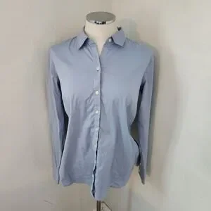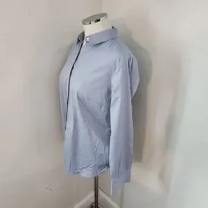 Ann Taylor Womens Blue Long Sleeve Button Down Blouse Shirt Size 10 Cotton Blend