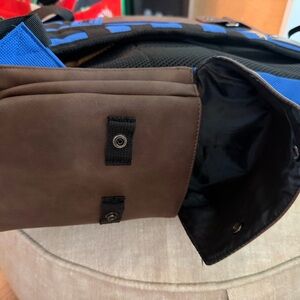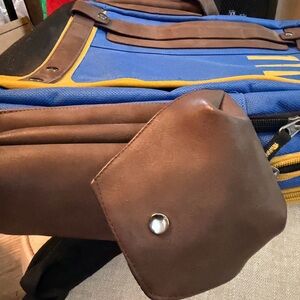 Stylish and durable, this backpack features a striking blue and yellow design. Perfect for daily use or travel.